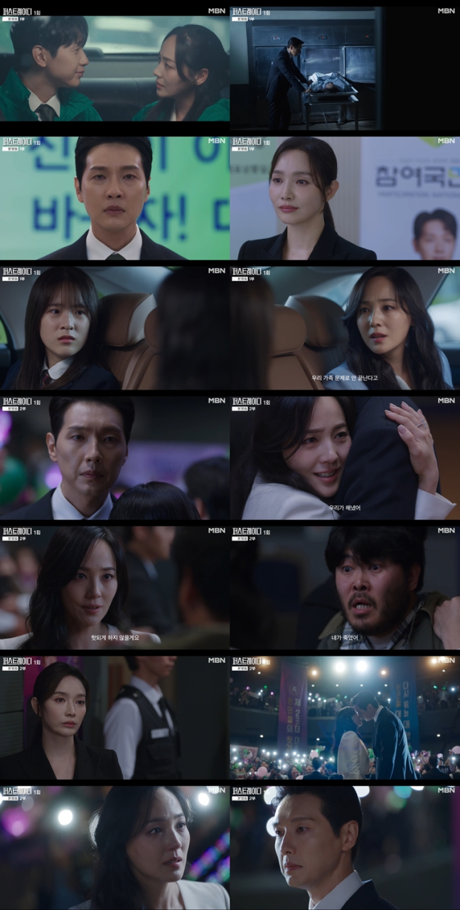 MBN의 새 미니시리즈 '퍼스트레이디'가 첫 방송부터 시청자들을 충격에 빠뜨렸다. 주인공 현민철(지현우)이 대통령에 당선된 순간, 아내 차수연(유진)에게 이혼을 요구하는 파격적인 엔딩으로 시작해 시청률 2.2%를 기록하며 기대 이상의 반응을 얻었다. 극 중 차수연은 남편을 대신해 선거 유세에 나서며 강렬한 연설로 관중의 열렬한 지지를 받았다.