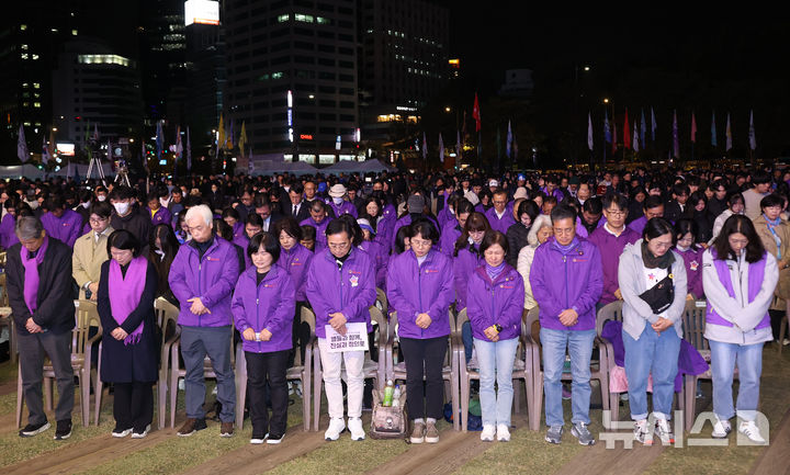 10.29 이태원참사 3주기를 맞아 유가족과 시민들이 서울광장에서 모여 희생자들을 기리는 묵념을 진행했다. 이날 행사에는 많은 이들이 참석해 슬픔을 나누며, 잊지 않겠다는 다짐을 함께 했다.