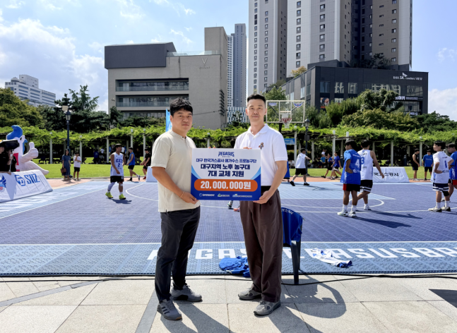 한국가스공사가 대구 지역의 노후 농구대를 교체하며 지역 사회에 기여하고 있다. 28일, 정이인 사무국장이 대구에서 7대의 농구대 교체를 기념하는 사진을 촬영했다. 이번 프로젝트는 대구 동구청과 중구 공공시설관리공단과 협력하여 총 2000만원의 예산으로 진행됐다.