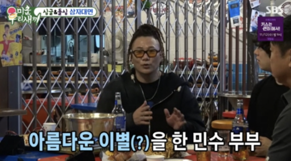 윤민수는 '우리는 합의를 예쁘게 했다. 소송 같은 것은 없었다'고 강조하며, 이혼 후에도 좋은 관계를 유지하고 있음을 드러냈다. 김희철은 그의 발언에 감탄하며 '아름다운 이별이 있구나'라고 반응했다. 또한, 윤민수는 재혼에 대한 질문에 '아직 재혼 생각은 없다. 지금 46살인데 어떻게 하냐'고 답하며, 현재로서는 새로운 사람을 만날 계획이 없음을 밝혔다.