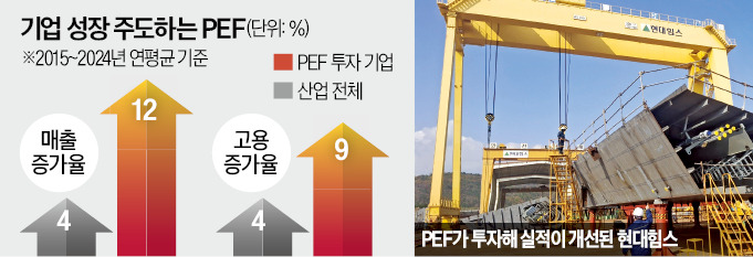 PEF의 성장은 단순한 자본 투자를 넘어 기업의 체질 개선과 혁신을 이끌어내는 데 기여하고 있다. 예를 들어, 에어퍼스트는 PEF의 인수 후 매출이 32.5% 증가하며 정규직도 60% 늘어났다. 이러한 성장은 PEF가 경영진과 직원의 이해관계를 일치시키고, 장기적인 목표를 공유하는 '원팀 전략' 덕분이다. PEF가 투자한 기업들은 평균 11%의 수출 증가율을 기록하며, 이는 국내 제조업 평균의 4배에 달한다.
