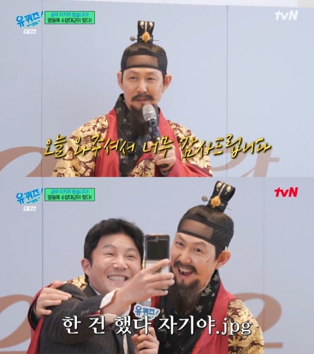 이정재는 ‘유 퀴즈’에서 시청률 공약을 지키며 수양대군 분장을 하고 명동에서 사인회를 개최했다. 조세호가 깜짝 등장해 이정재와 기념 사진을 찍으며 화기애애한 분위기를 연출했다. 이정재의 공약 이행은 팬들에게 큰 즐거움을 선사했다.
