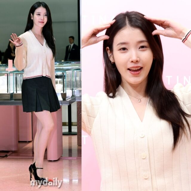 아이유가 최근 서울 송파구에서 열린 제이에스티나 팝업스토어 오픈 행사에 참석해 눈길을 끌었다. 그녀는 크림색 니트 가디건과 블랙 미니스커트를 조화롭게 매치하여 깔끔하면서도 세련된 룩을 선보였다. 특히, 군더더기 없는 실루엣과 차분한 색상 조합이 아이유의 청순한 매력을 한층 강조했다.
