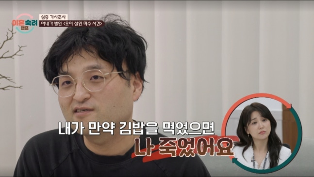 JTBC ‘이혼 숙려 캠프’에서 남편이 아내의 김밥에 오이가 들어있어 생명 위협을 느꼈다고 주장하며 논란이 일었다. 남편은 아내가 오이 알레르기가 있는 자신에게 오이가 포함된 김밥을 강제로 먹이려 했다고 주장했으며, 아내는 이를 부인하며 미안한 마음을 전했다. 이 사건은 부부 간의 신뢰를 깨뜨린 계기가 되었다.