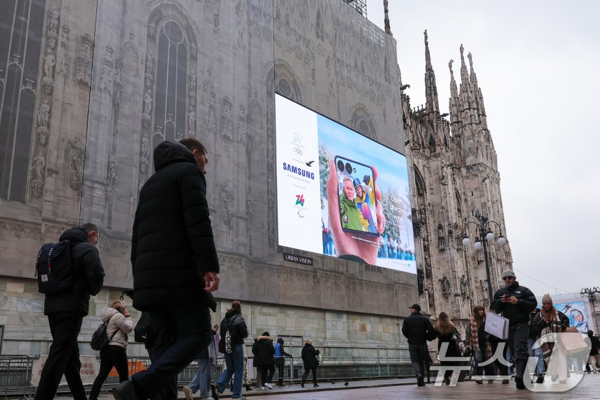 2026 밀라노·코르티나담페초 동계올림픽을 불과 사흘 앞둔 3일, 이탈리아 밀라노의 상징인 두오모 성당 외벽에서 삼성전자의 광고가 눈길을 끌고 있습니다. 이 광고는 올림픽을 맞아 특별히 설치된 전광판을 통해 운영되고 있으며, 삼성전자의 브랜드 이미지를 더욱 부각시키고 있습니다.